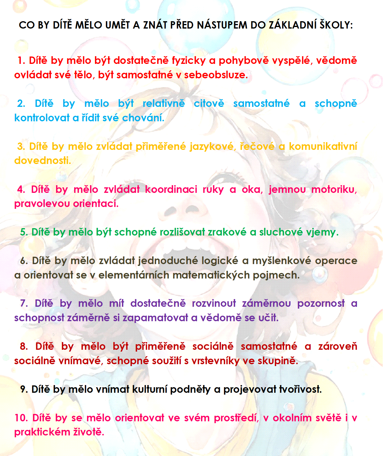 Tyto aktivity podporují celkový rozvoj dítěte a připravují ho na vstup do první třídy.