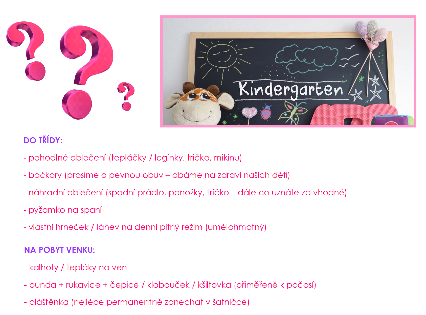 SEZNAM VĚCÍ DO MŠ